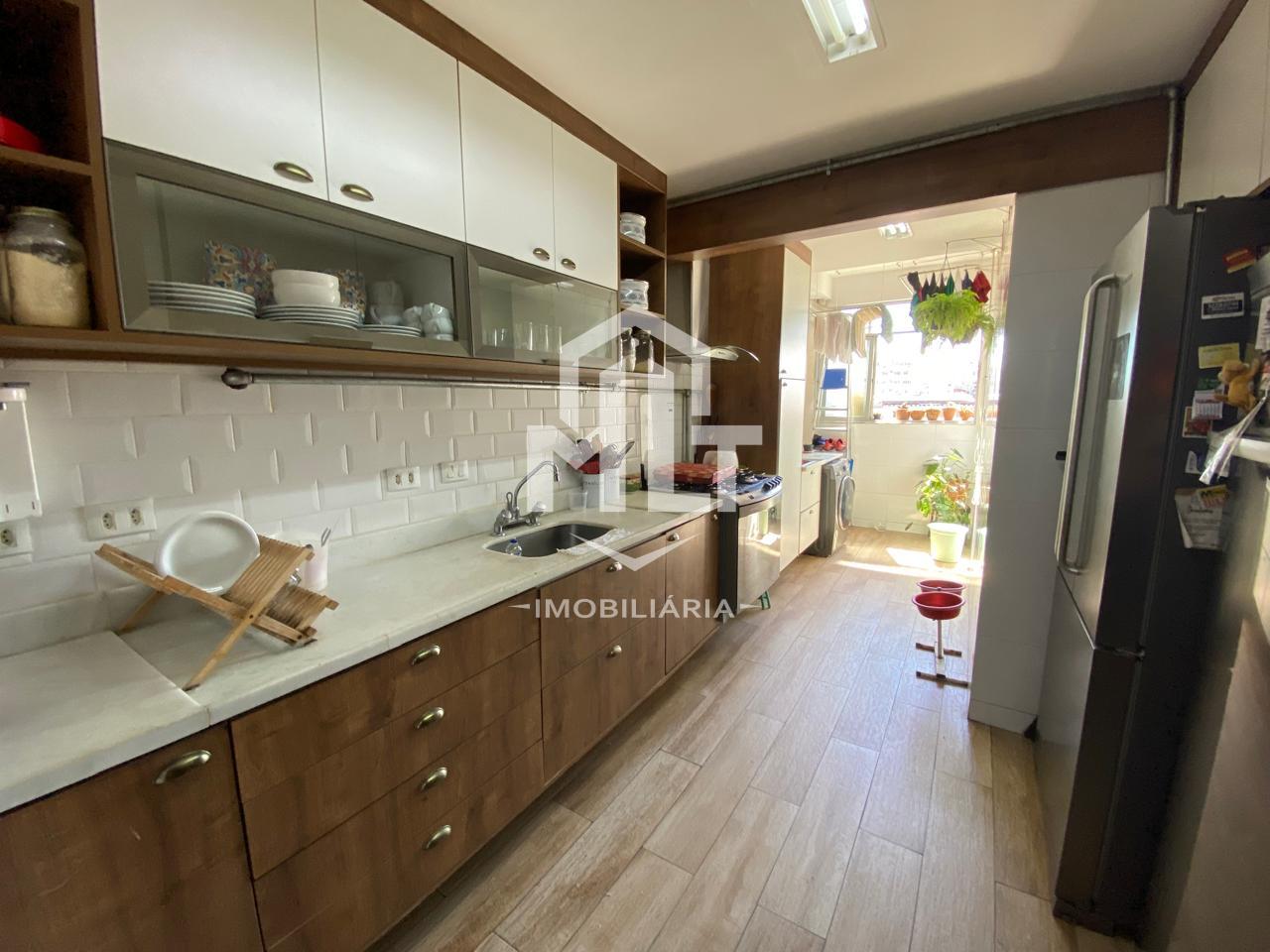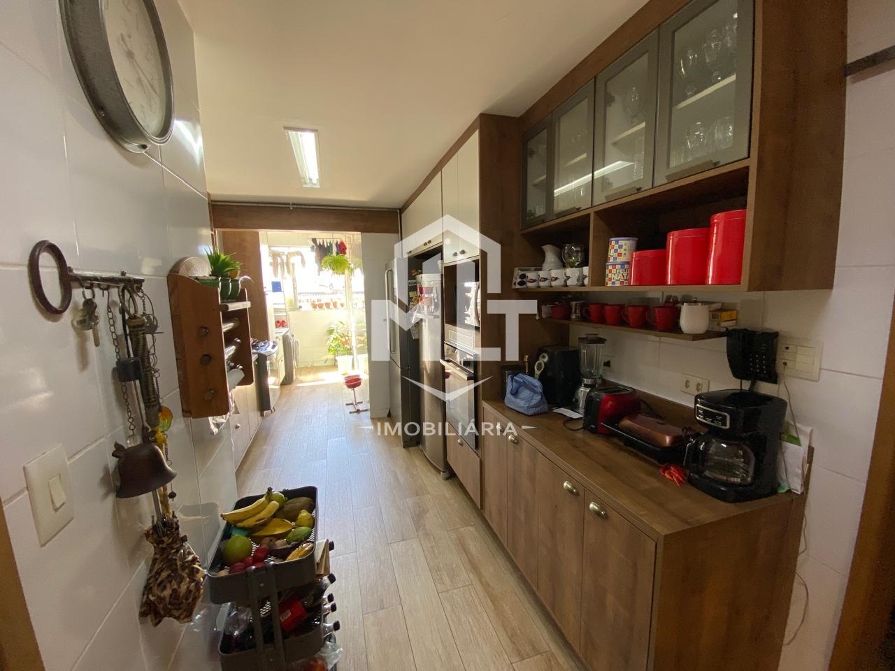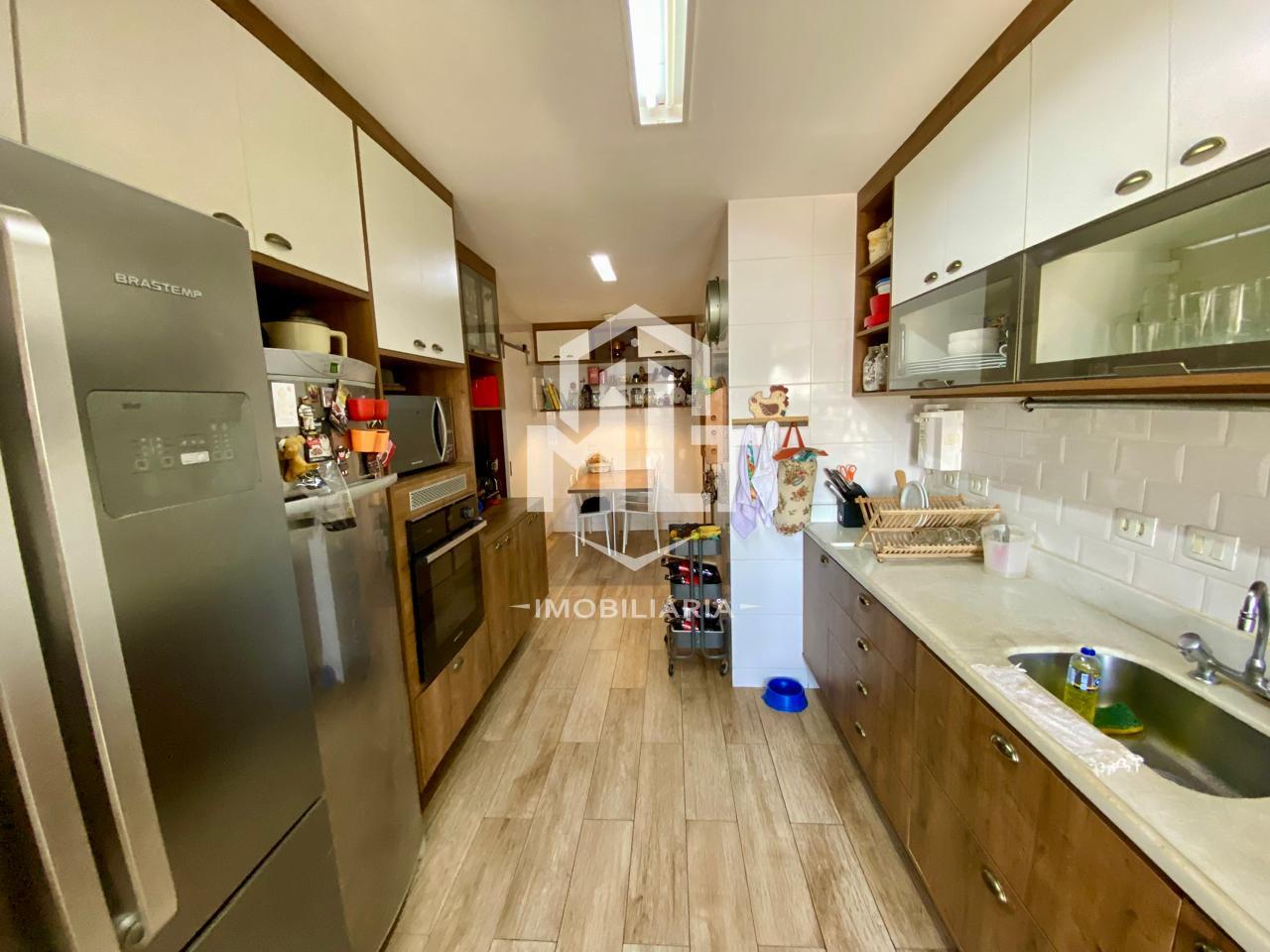 Primeiro andar conforto que abraça você Ampla varanda integrada que amplia o living e convida à convivência. Sala espaçosíssima, perfeita para receber familiares e amigos com elegância. 03 dormitórios luminosos, sendo todos suítes com excelente mobiliário embutido que une design e funcionalidade. Banheiro social moderno. Cozinha planejada generosa, com ótima distribuição e armários de qualidade. Área de serviço bem equipada. Dependência completa de serviço.